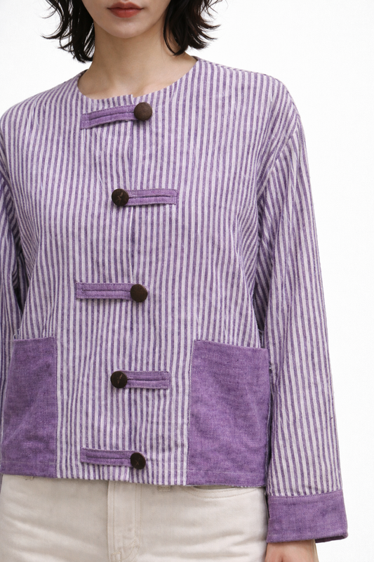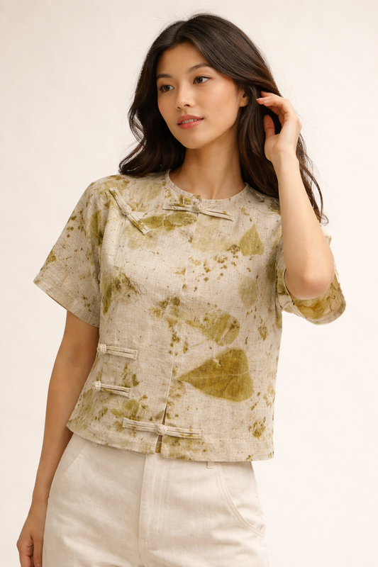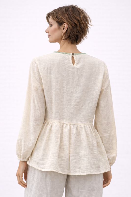 Pearl-button Nit Tayar Cotton Mid Sleeve Top