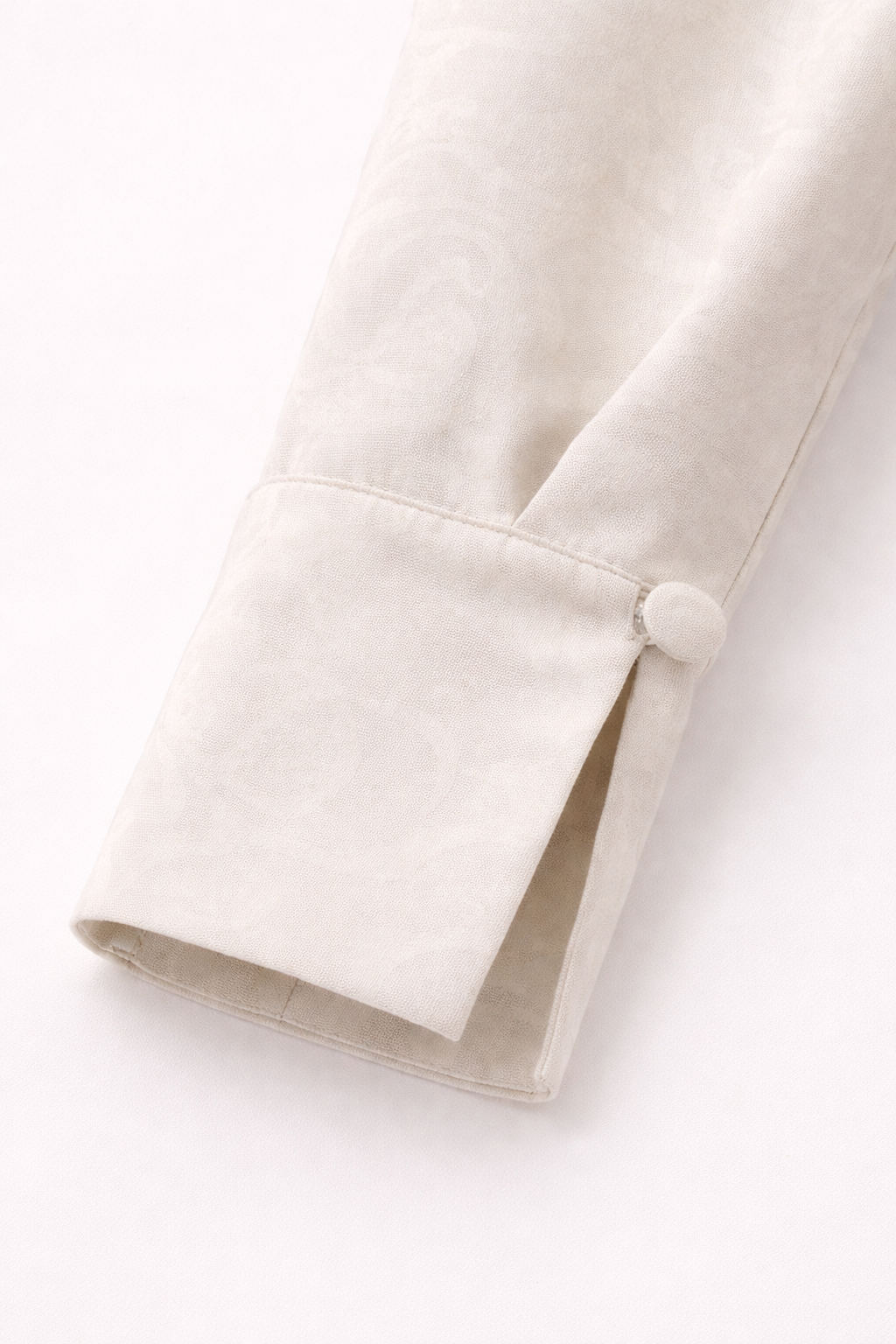 Elegant and timeless, this handcrafted silk-blend shirt showcases a refined floral jacquard texture with a minimalist design. The high Mandarin collar and covered button details highlight traditional sophistication, while the tailored cut ensures a flattering silhouette. Perfect for pairing with longyi or skirts, this piece brings a graceful balance of classic Burmese style and modern elegance — ideal for both formal occasions and cultural events.